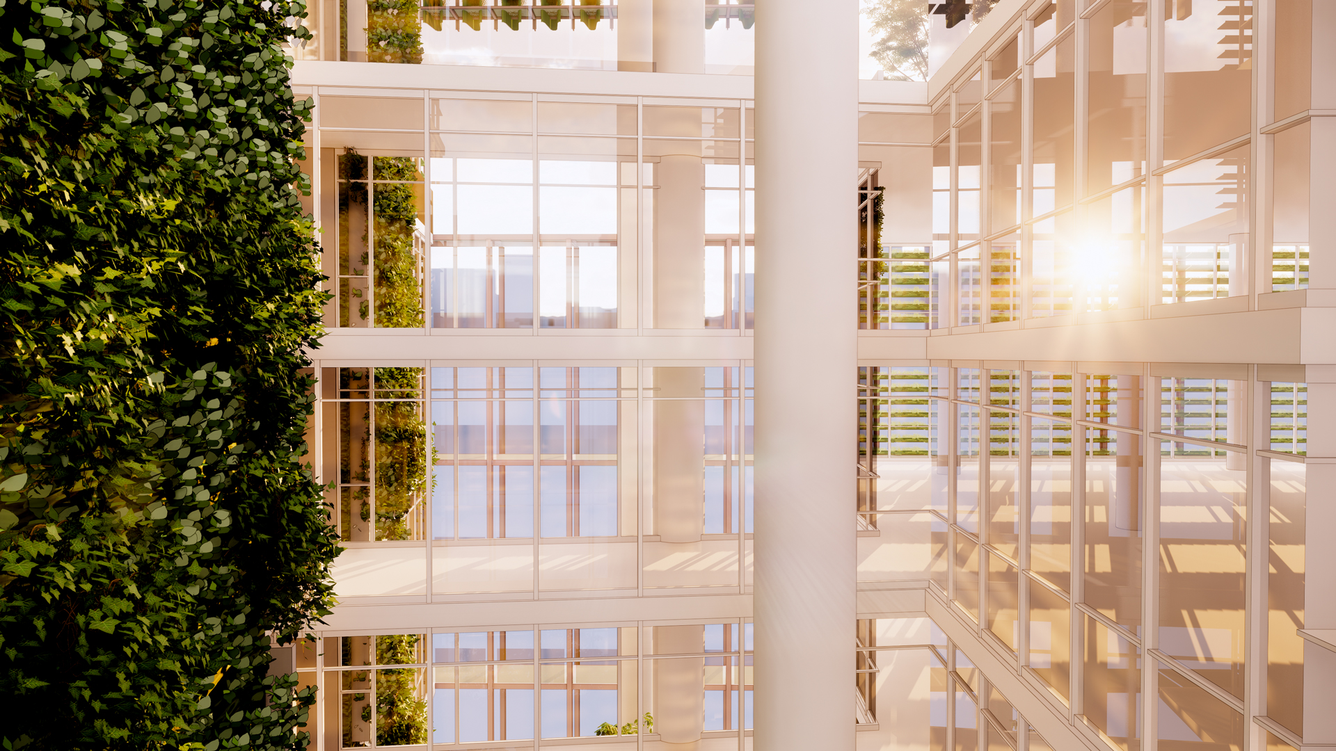 Planning the urban vicinity. A high-rise ecological building with a park over the highway #531 as a part of sustainable planning.